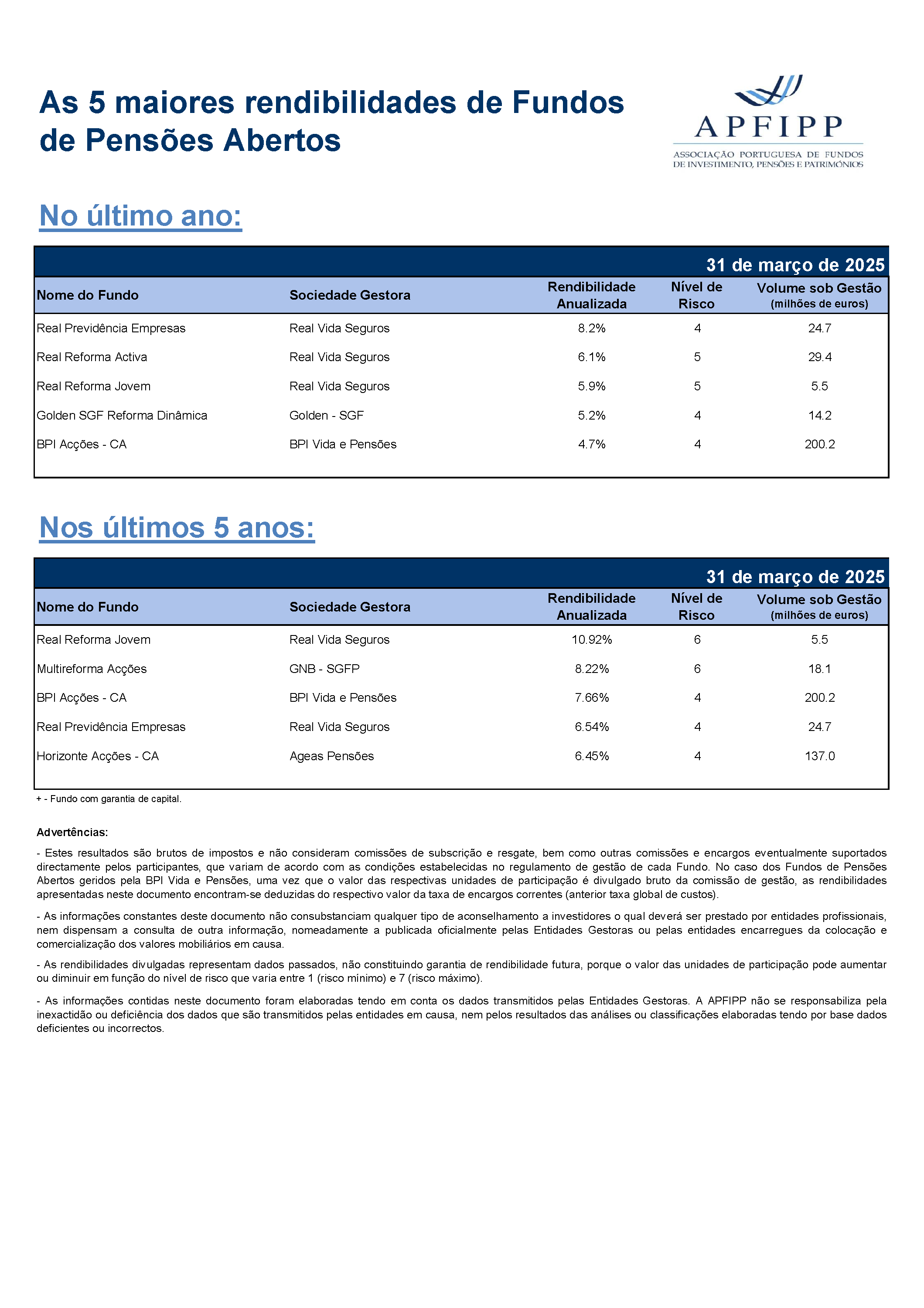 5 Maiores Rendibilidades F Pensoes Março 2025